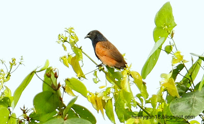 It's been quite sometime since I last sighted the Chestnut-breasted Malkoha. So it was to my delight when a pair were amongst the early birds which showed themselves as my friends and I were about to set out for our birding outing. A shy and sensitive specie both decided to keep their distance, although we ensured we kept sufficient space between ourselves and the pair. I managed to take in 3 shots of one of them before both birds flew deeper into the forest. Here are 2 photos.